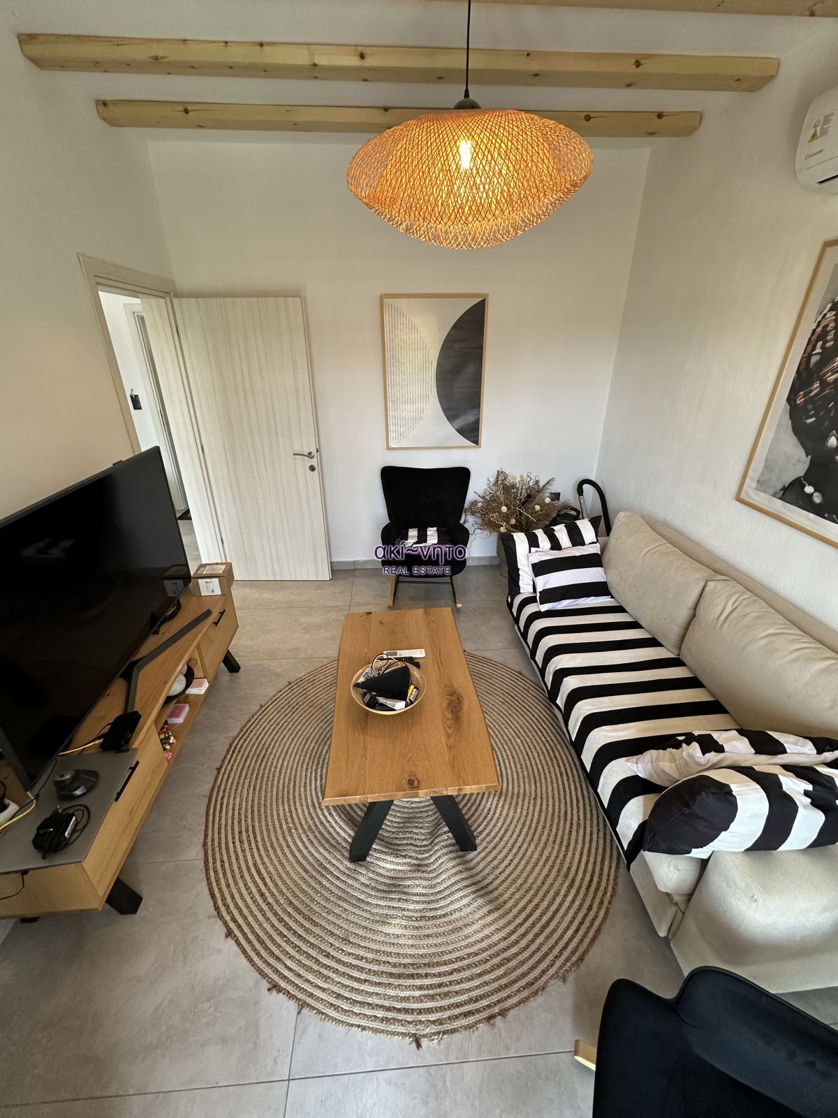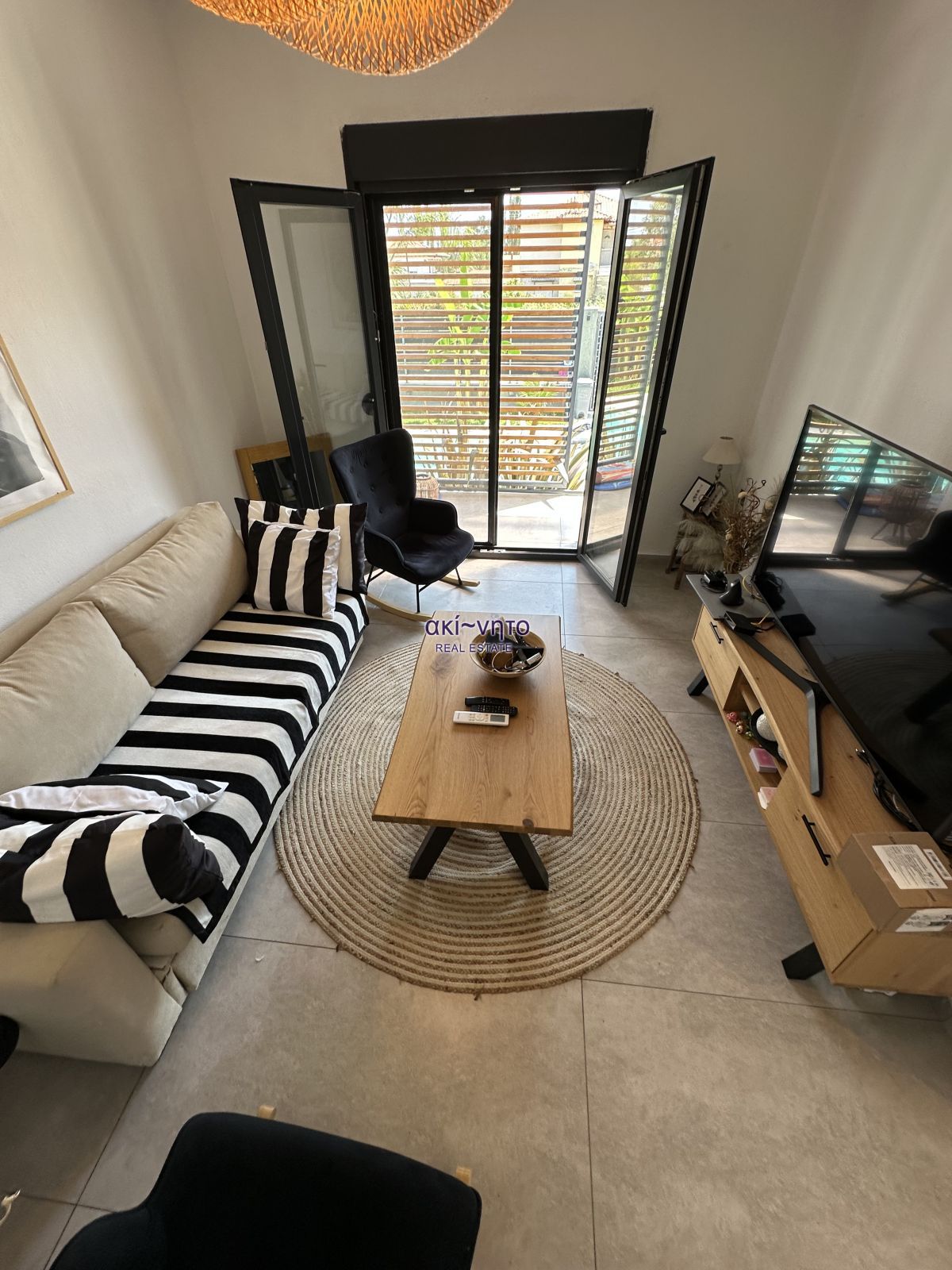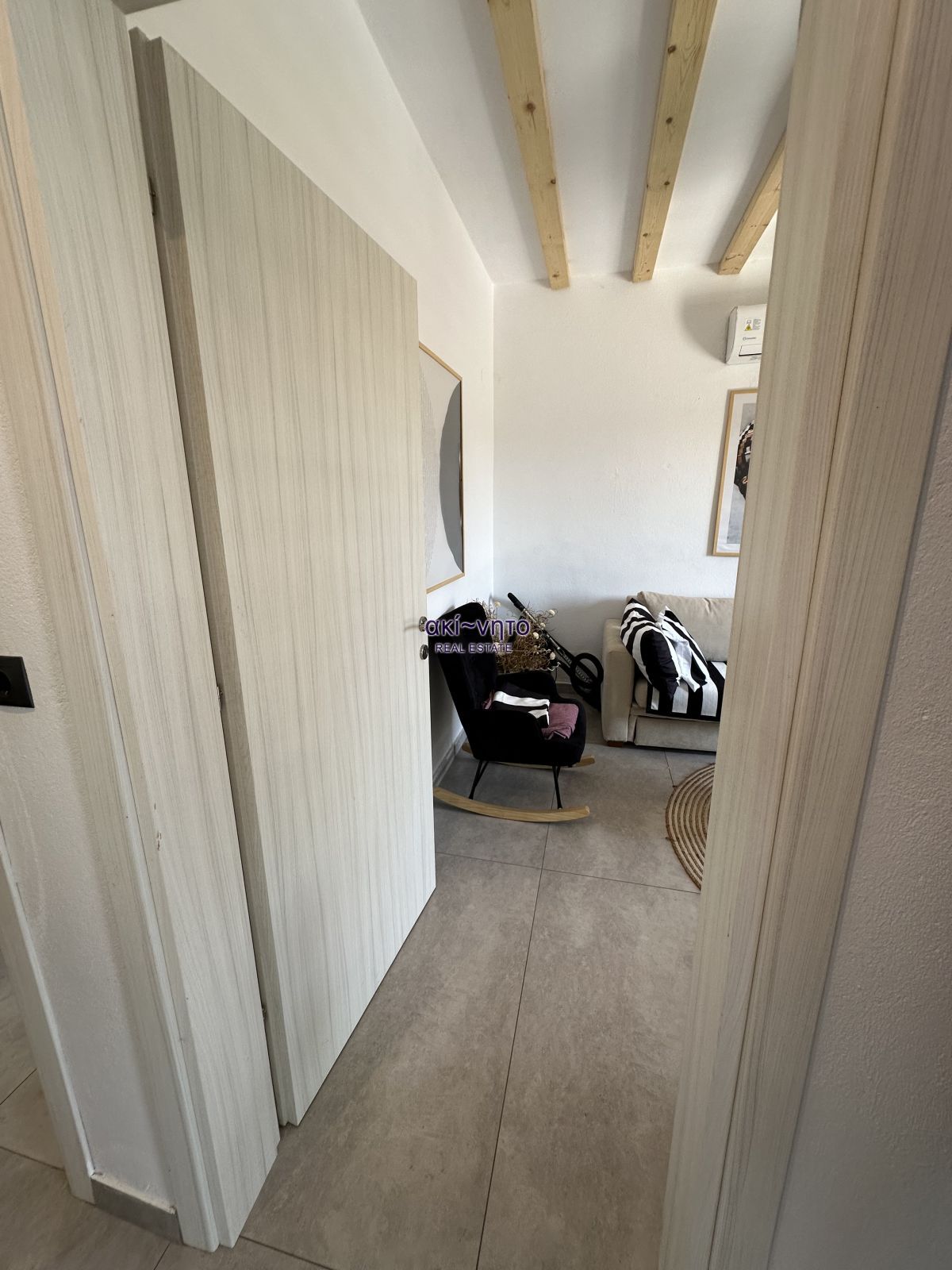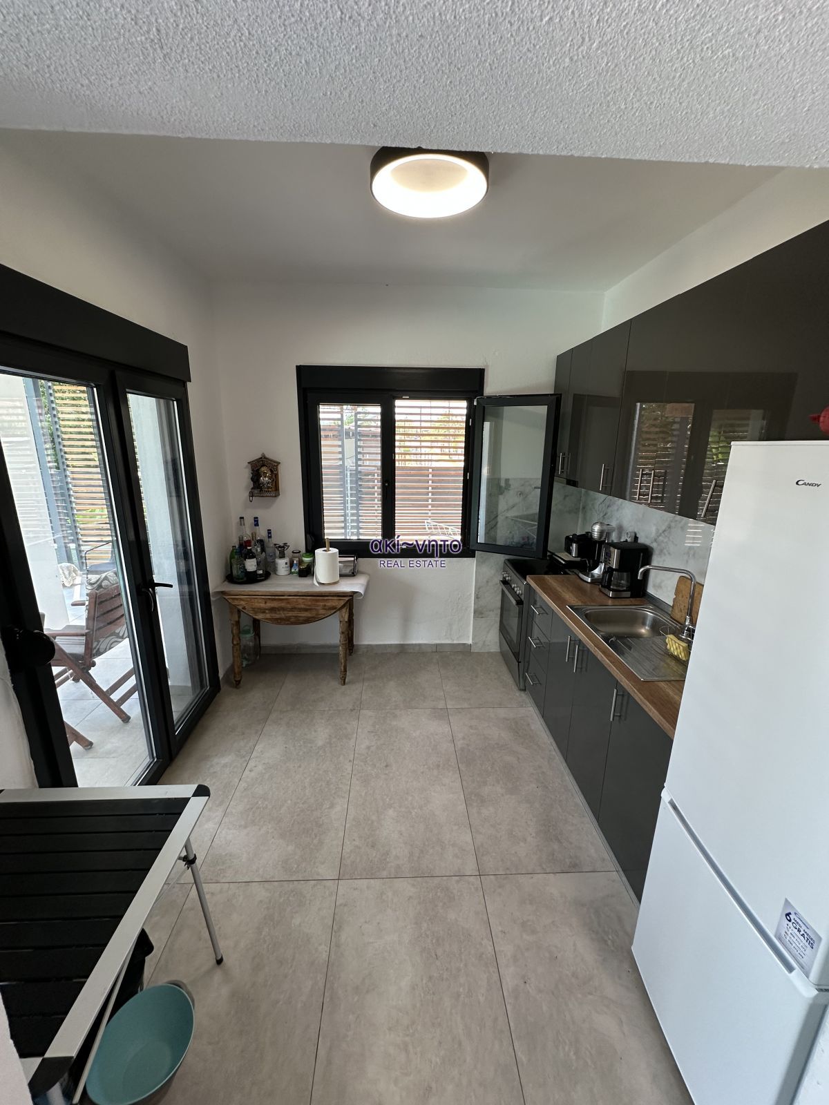 Διαθέτει κουφώματα συνθετικά με διπλά τζάμια και είναι εξοπλισμένα με σίτες. Στα μπαλκόνια του υπάρχουν και τέντες. Τα δάπεδα είναι από πλακάκια και βιομηχανικού τύπου επίστρωση. Στα θετικά στοιχεία του αξίζει να επισημανθεί η πλήρης επίπλωση. όπως και ολες τις ηλεκτρικές συσκευές