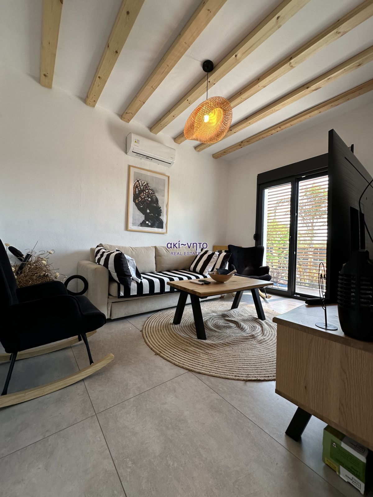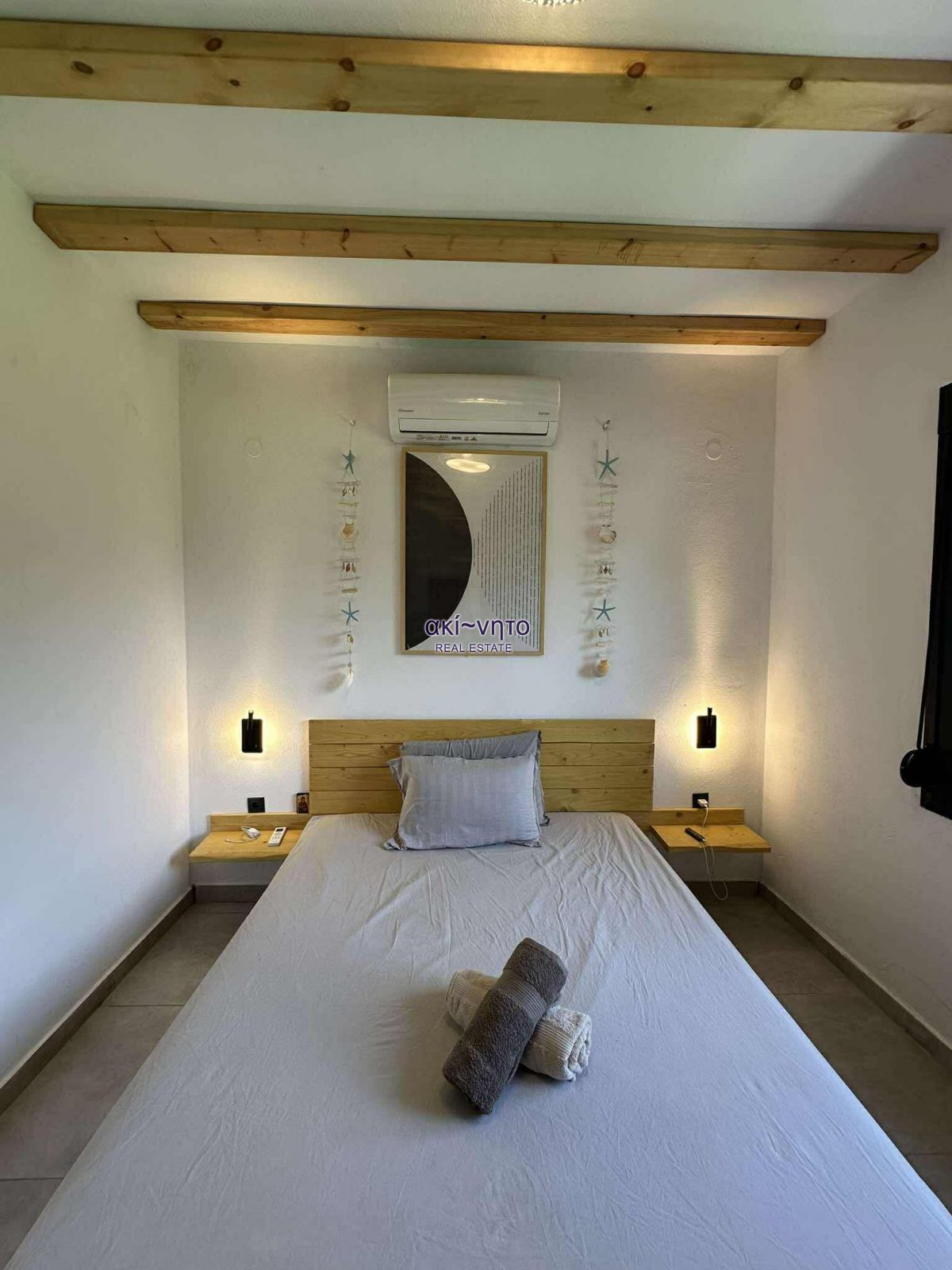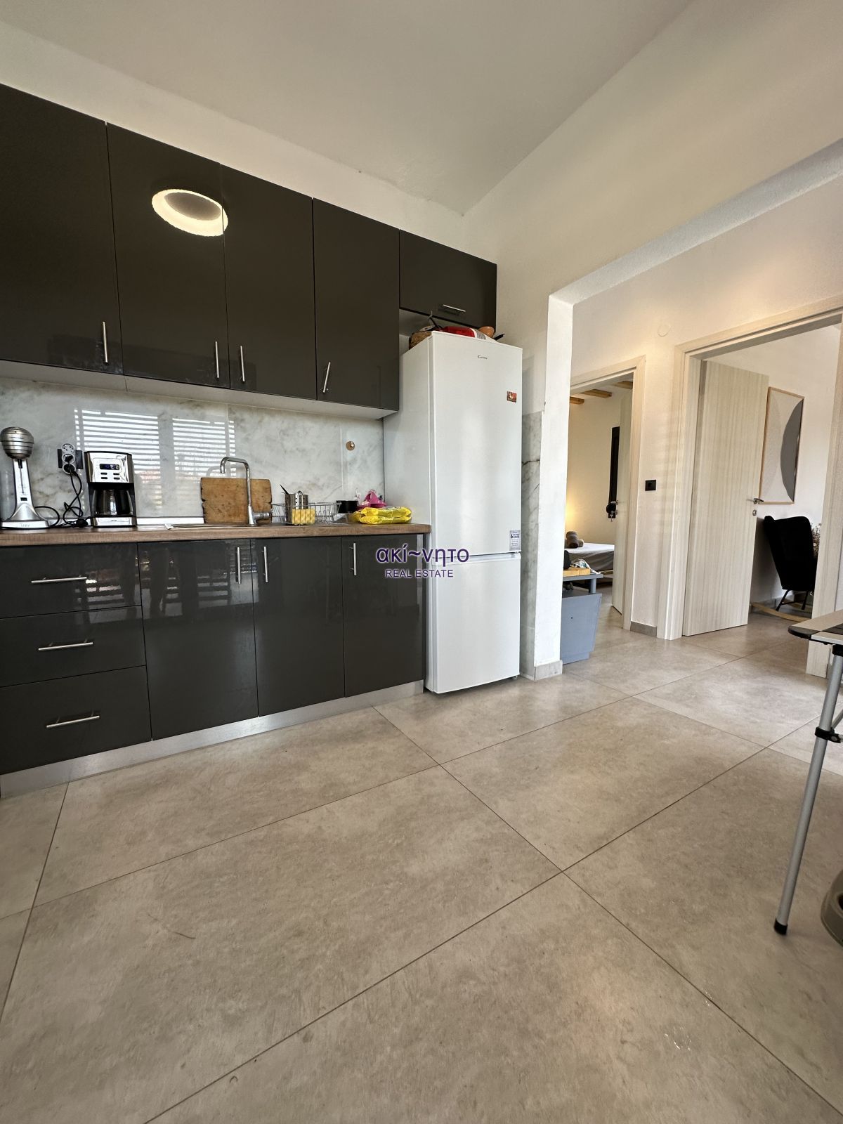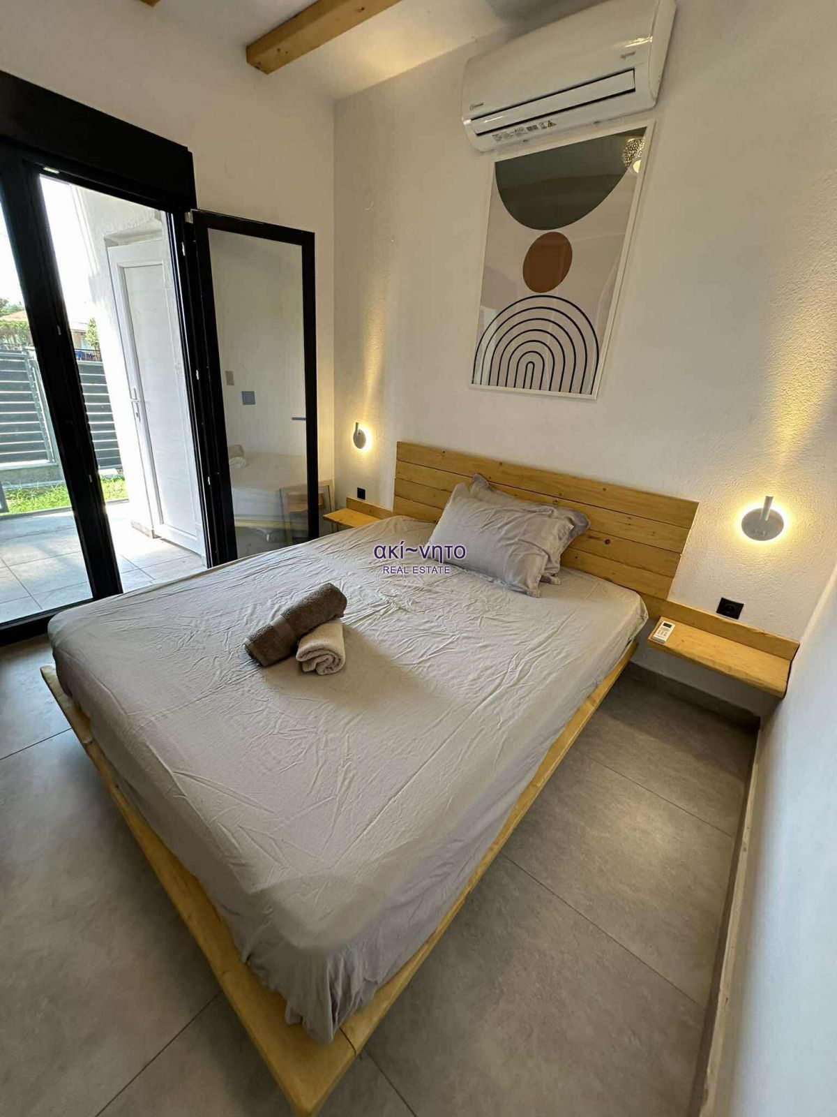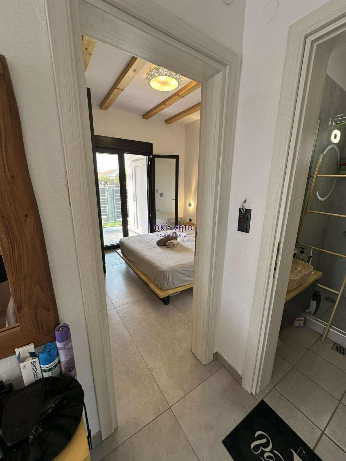 Διαθέτει κουφώματα συνθετικά με διπλά τζάμια και είναι εξοπλισμένα με σίτες. Στα μπαλκόνια του υπάρχουν και τέντες. Τα δάπεδα είναι από πλακάκια και βιομηχανικού τύπου επίστρωση. Στα θετικά στοιχεία του αξίζει να επισημανθεί η πλήρης επίπλωση. όπως και ολες τις ηλεκτρικές συσκευές
