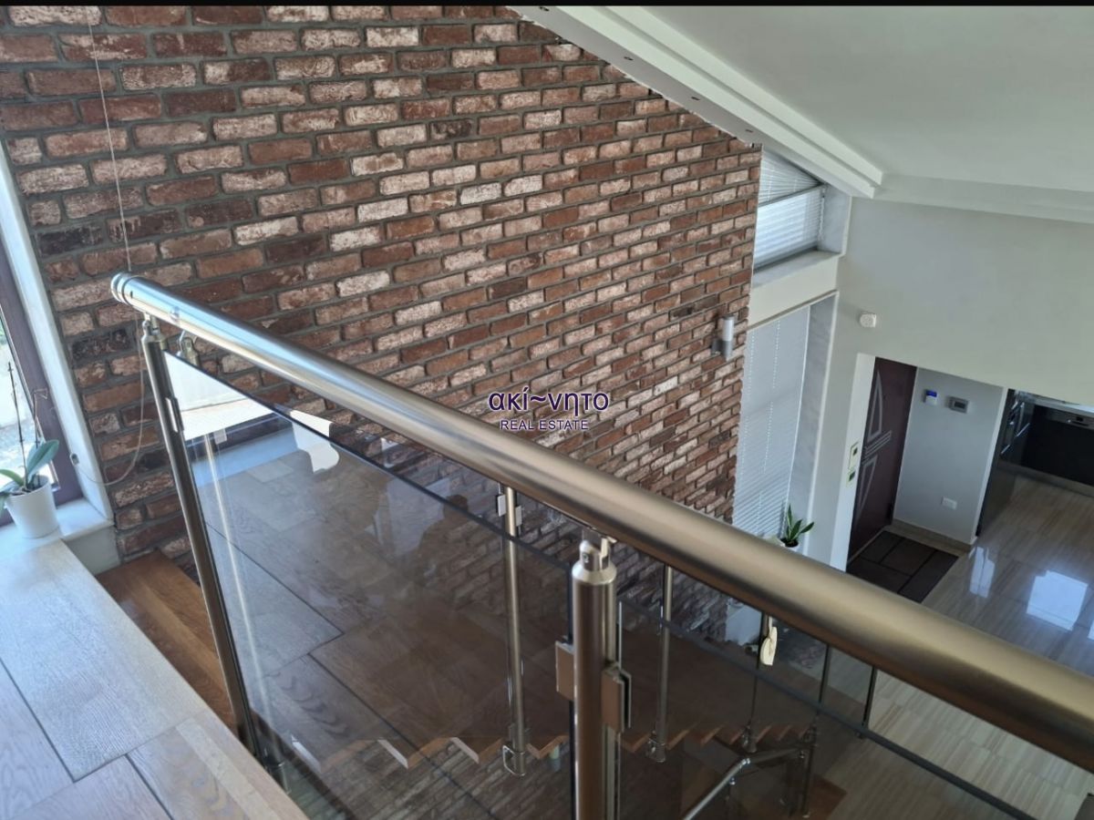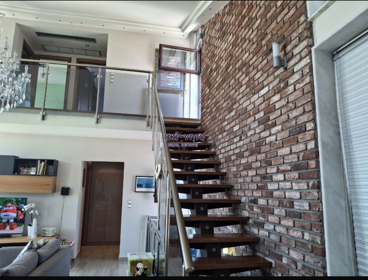 Είναι διαρρυθμισμένο σε 3 επίπεδα με εσωτερική σκάλα. Αποτελείται από 4 υπνοδωμάτια με ντουλάπες, 2 σαλόνια, 3 μπάνια και 2 WC. Επιπλέον διαθέτει κήπο, βεράντα, αποθήκη, playroom και θέση στάθμευσης.