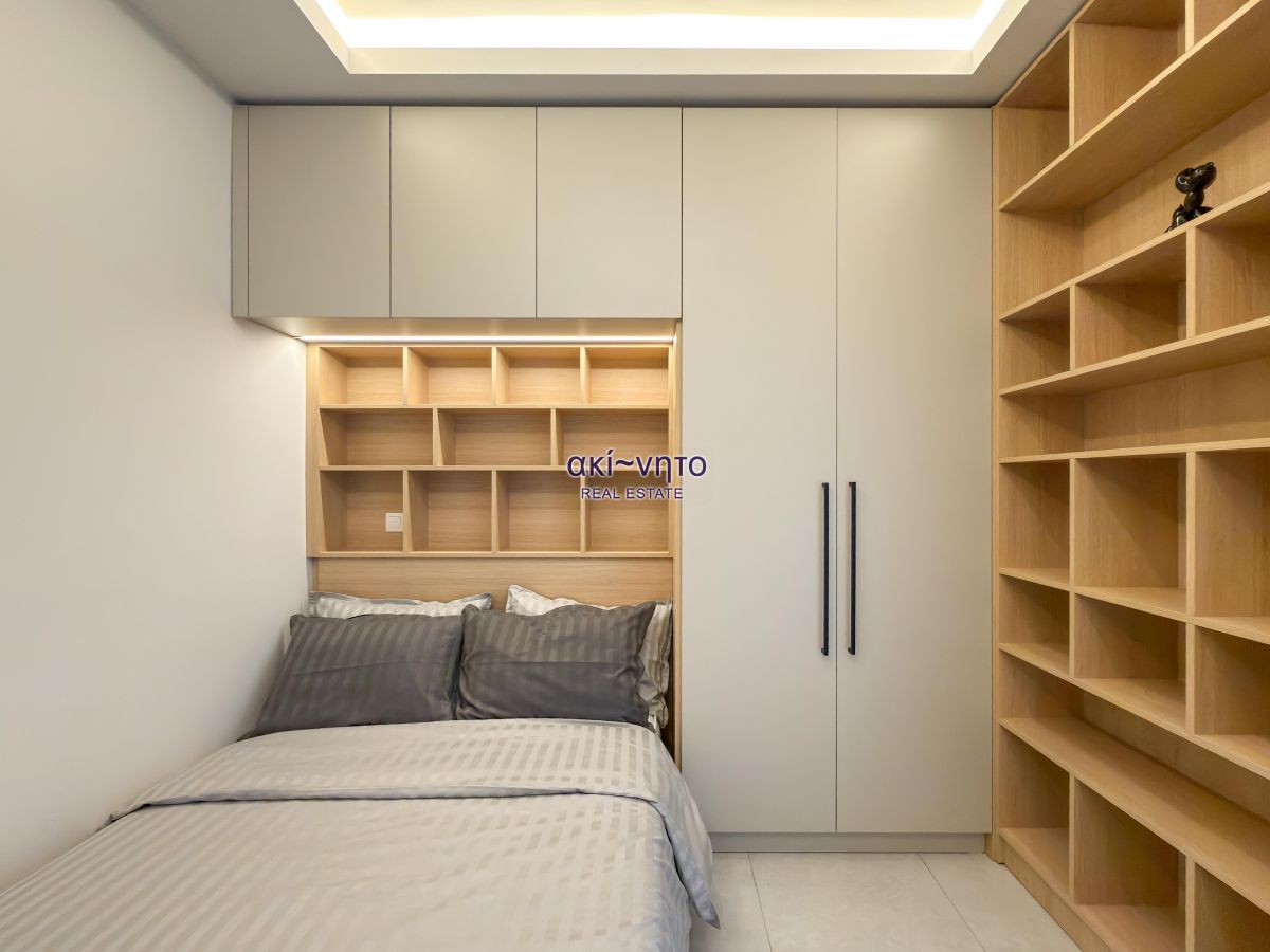 Αποτελείται από 2 υπνοδωμάτια με ντουλάπες και 1 μπάνιο. Το ακίνητο είναι πλήρως εξοπλισμένο. Επιπλέον διαθέτει βεράντα.